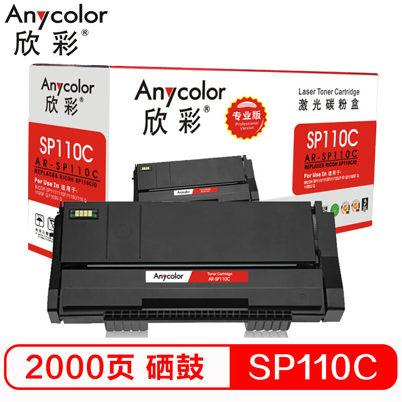 • 欣彩(Anycolor)SP110C/SP110Q(专业版)AR-SP110C黑色墨粉盒 适用理光Ricoh SP111 111SU 111SF SP110SU