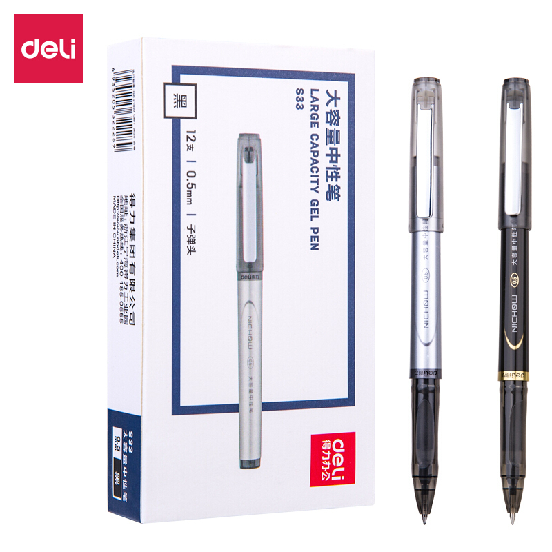 • 得力S33 商务中性笔水笔0.7mm签字笔 办公用品 12支/盒黑
