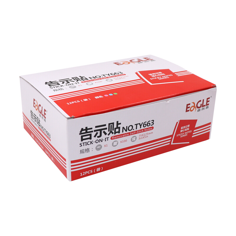 • 益而高(EaGLE)告示贴/便签纸/便签本/便利贴/百事贴/易事贴75*125mm三色100页*12本 NO.TY663