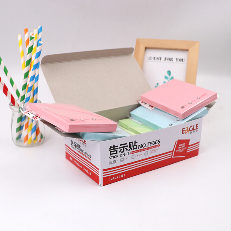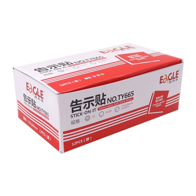 益而高(EaGLE)告示贴/便签纸/便签本/便利贴/百事贴/易事贴75*100mm三色100页*12本 NO.TY665