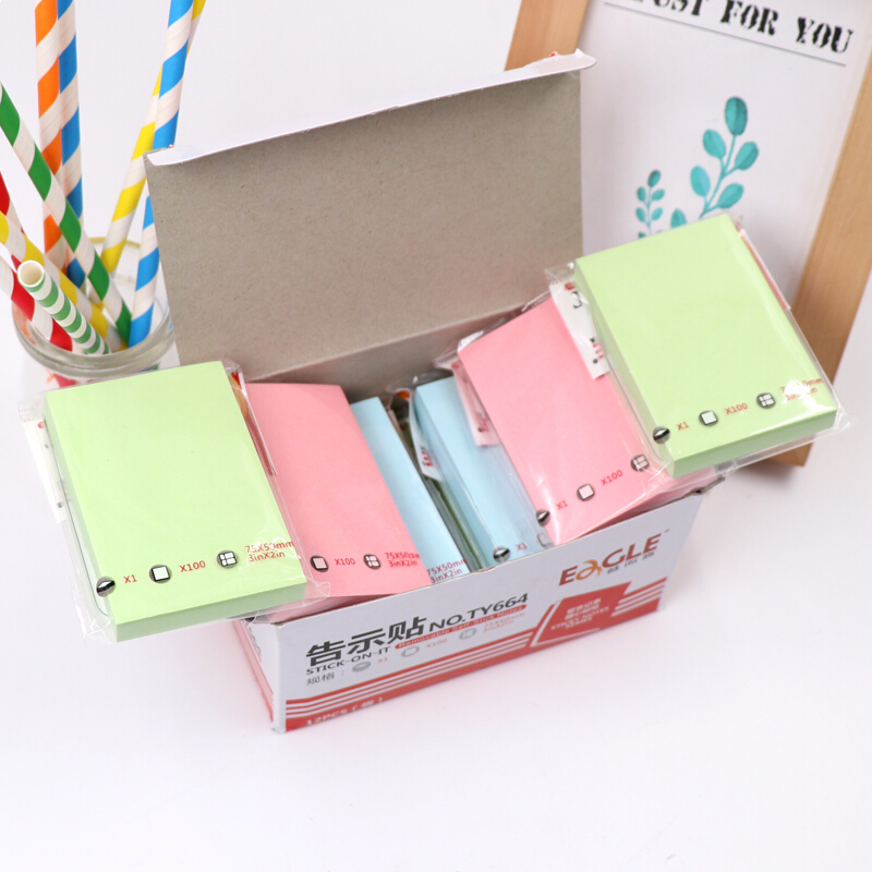 益而高(EaGLE)告示贴/便签纸/便签本/便利贴/百事贴/易事贴75*50mm三色100页*12本 NO.TY664