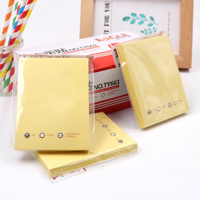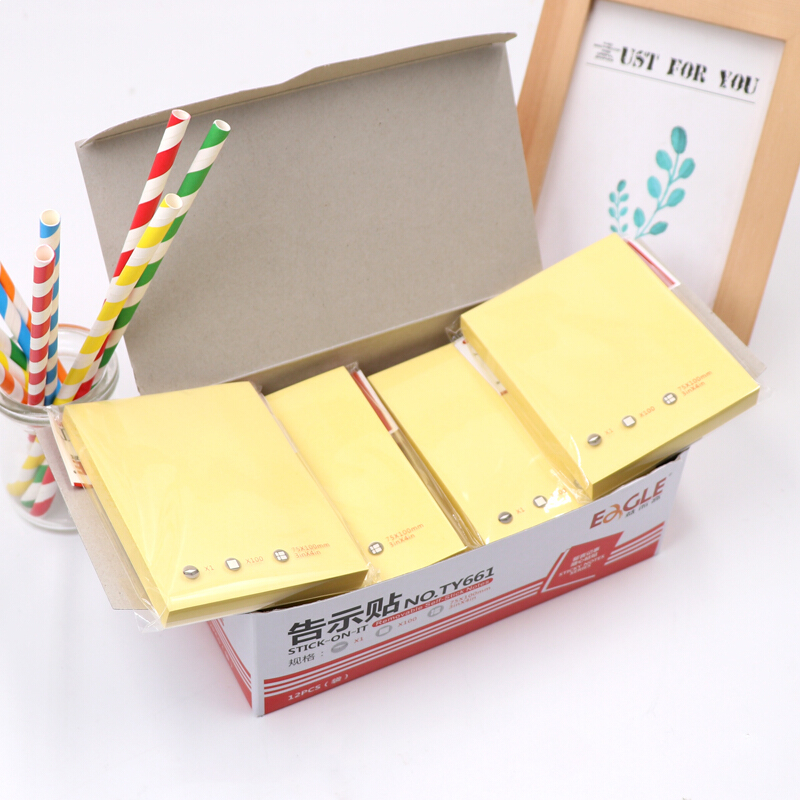 益而高(EaGLE)告示贴/便签纸/便签本/便利贴/百事贴/易事贴75*100mm浅黄色100页*12本 NO.TY661