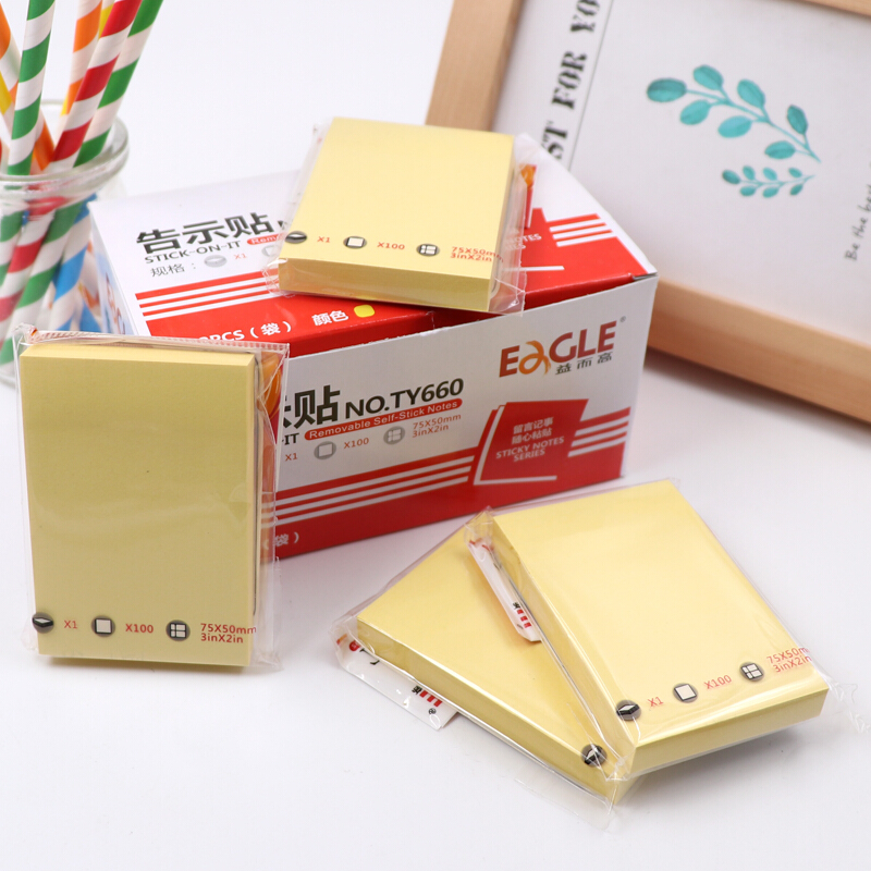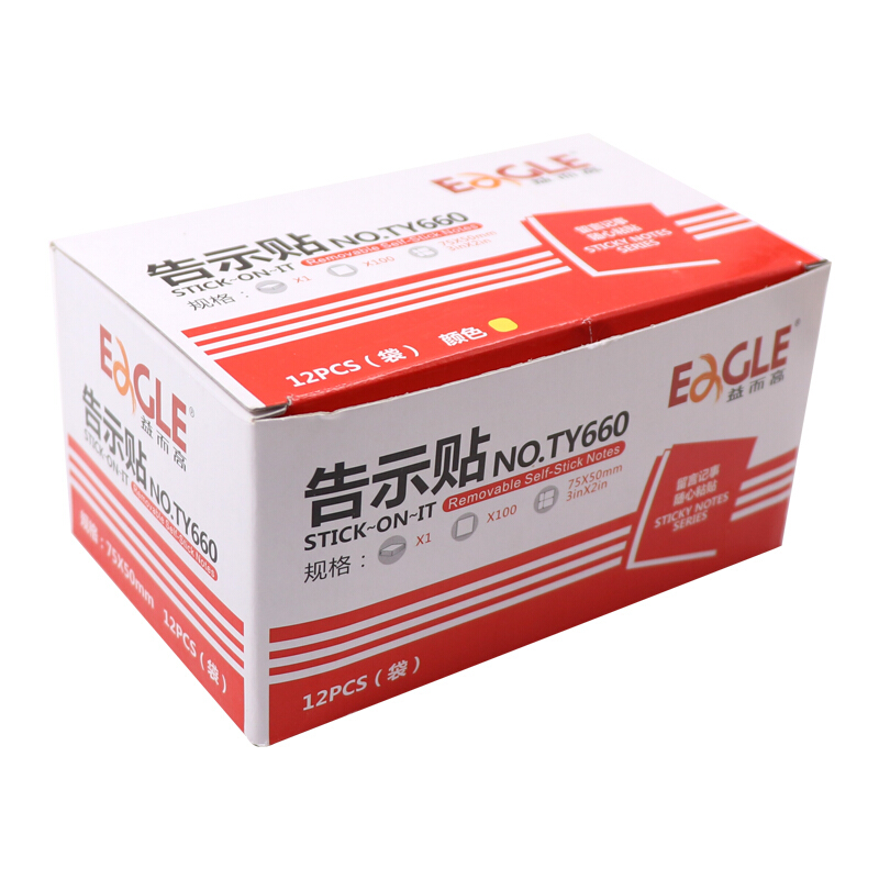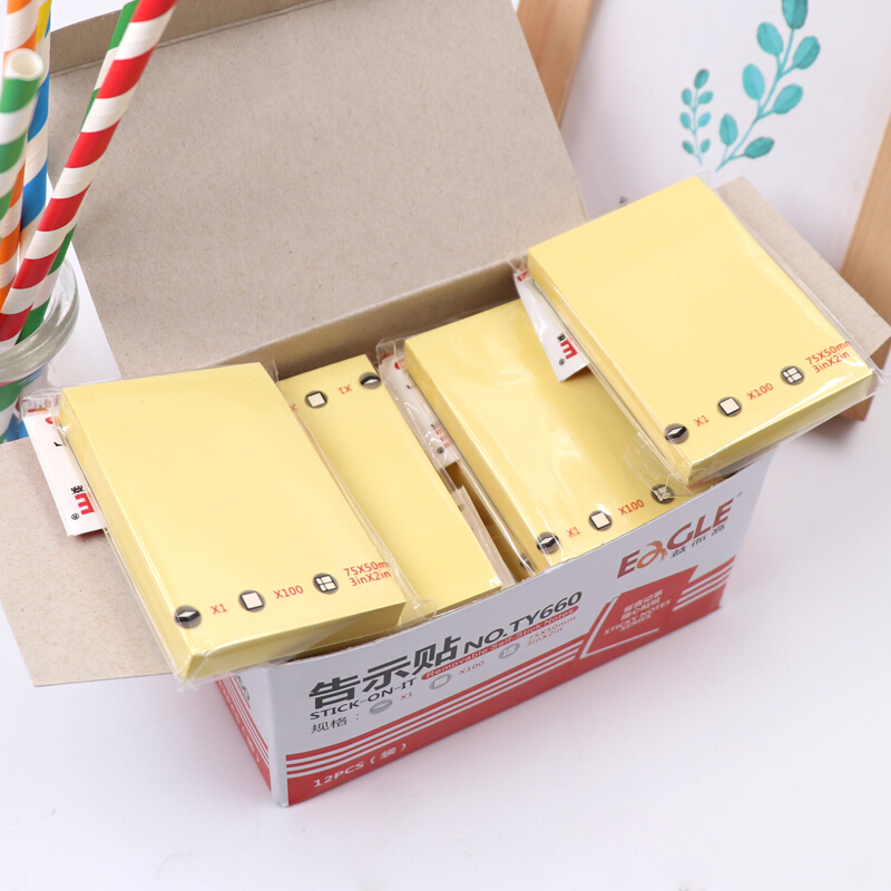 益而高(EaGLE)告示贴/便签纸/便签本/便利贴/百事贴/易事贴75*50mm浅黄色100页*12本 NO.TY660