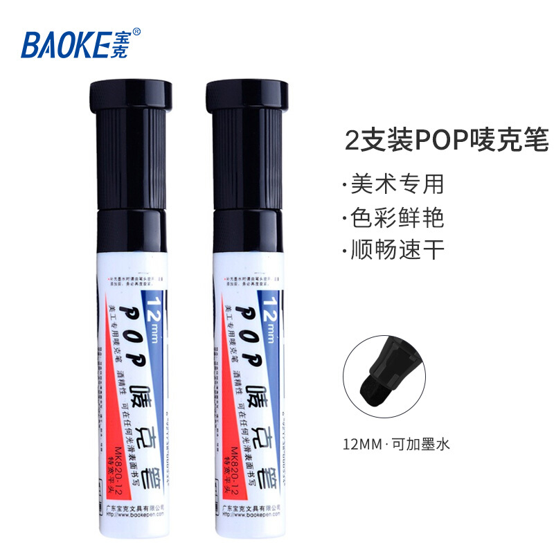 宝克(BAOKE)12mm 黑色POP唛克笔 海报广告画笔 彩色马克笔记号笔 2支装 MK820-12