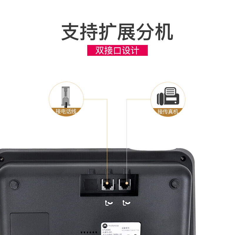 • 摩托罗拉(Motorola)电话机座机 固定电话 办公家用 大屏幕 免提 双接口CT260C(黑色)