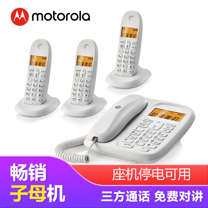 • 摩托罗拉(Motorola)数字无绳电话机 无线座机 子母机一拖三 办公家用 中文显示 双免提套装CL103C(白色)