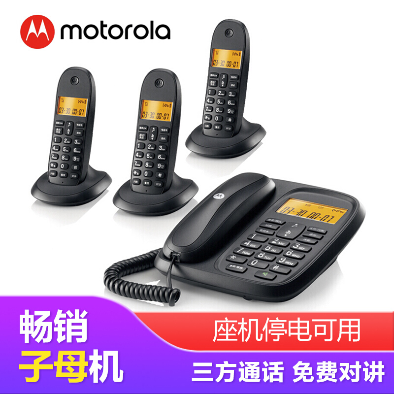• 摩托罗拉(Motorola)数字无绳电话机 无线座机 子母机一拖三 办公家用 中文显示 双免提套装CL103C(黑色)