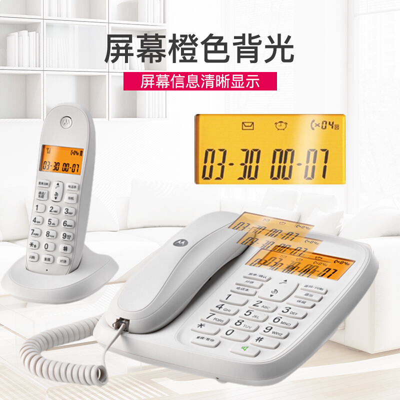 • 摩托罗拉(Motorola)数字无绳电话机 无线座机 子母机一拖二 办公家用 中文显示 双免提套装CL102C(白色)