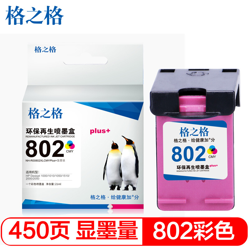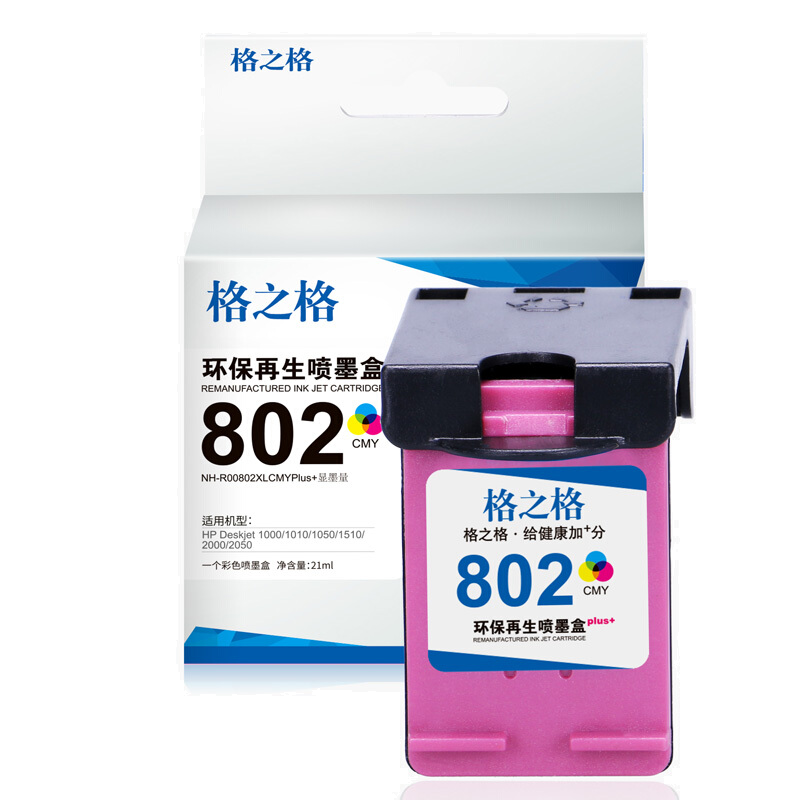 格之格802墨盒 彩色大容量显墨量适用惠普hp1000 1010 1050 1510 2000 2050打印机