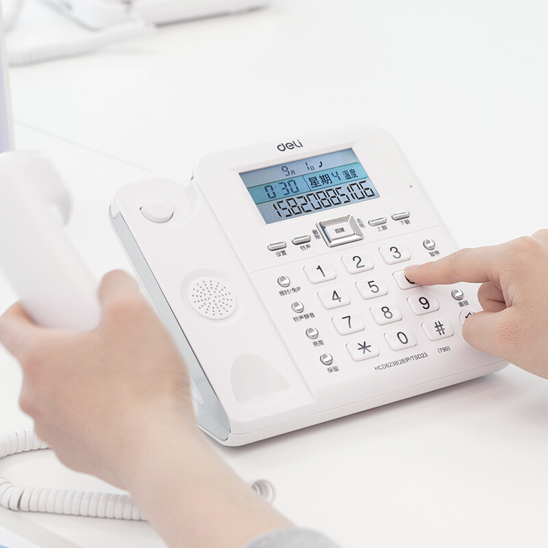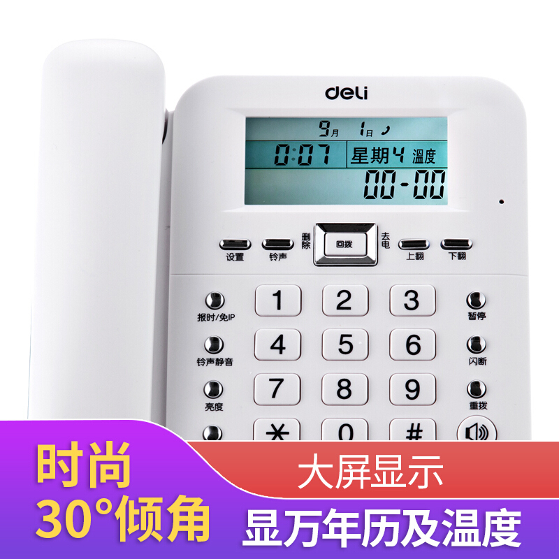 • 得力790 电话机座机 固定电话 办公家用 30°倾角 温度显示 白