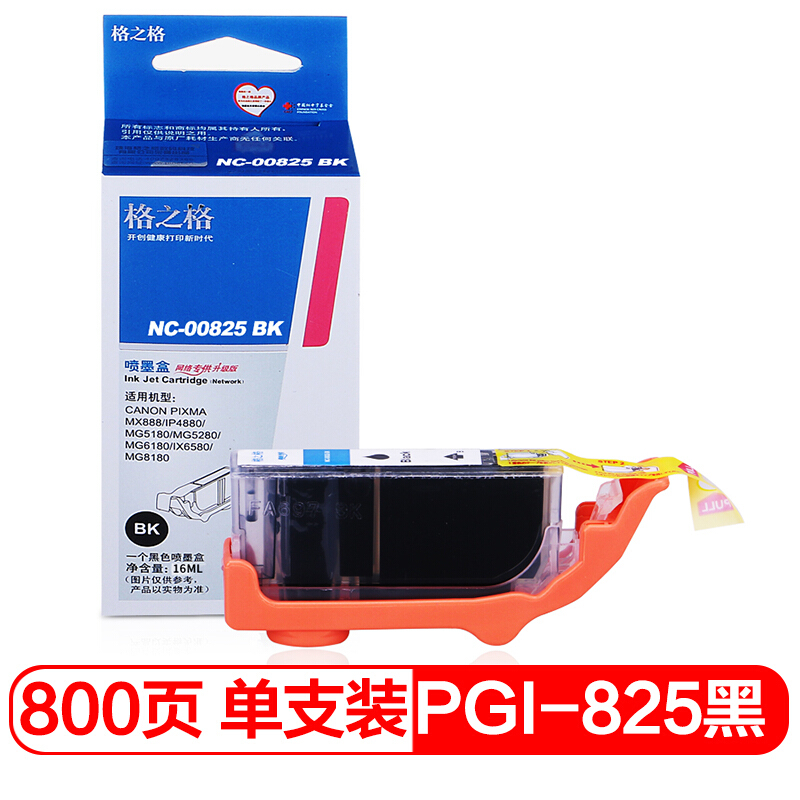 • 格之格PGI-825PGBK黑色墨盒NC-00825BK适用佳能IX6580 IP4980 IP4880 G5180 MG8180 MG6280 MX898