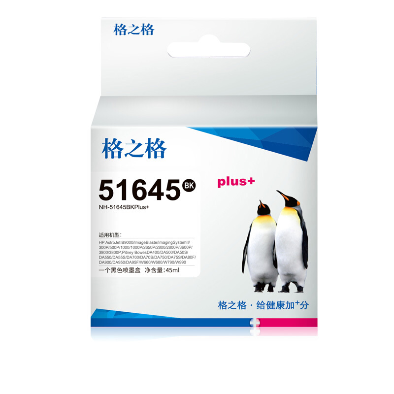 格之格 51645A黑色墨盒HP45A 适用惠普 850C 820i 855c 2650P墨盒3600P HP45双支装