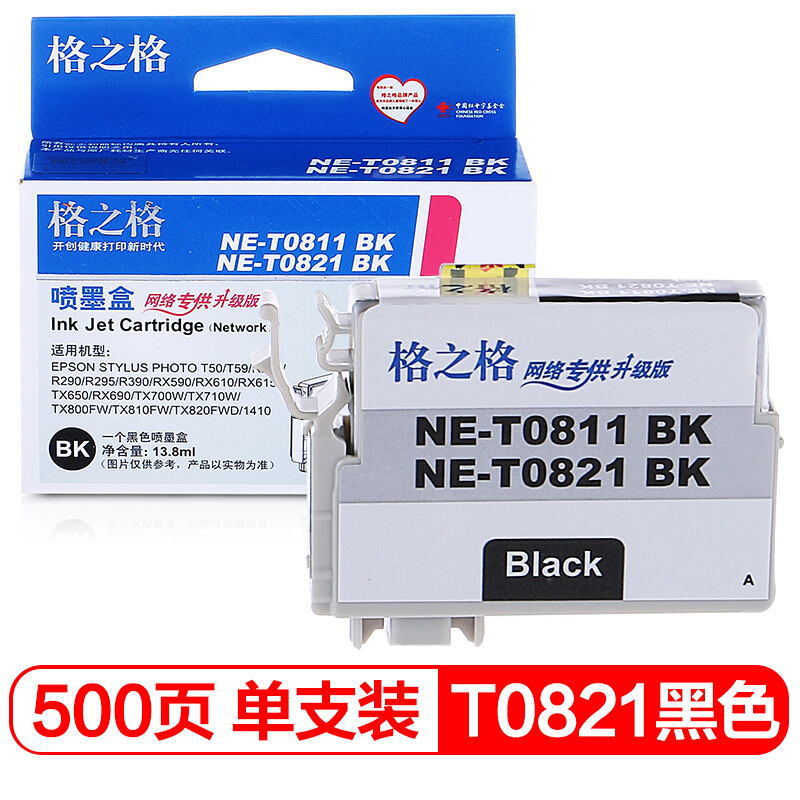 • 格之格T0821墨盒黑色爱普生R270 R295 R390 RX590 R290 RX610打印机墨盒 黑色