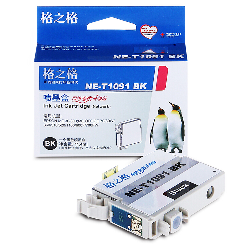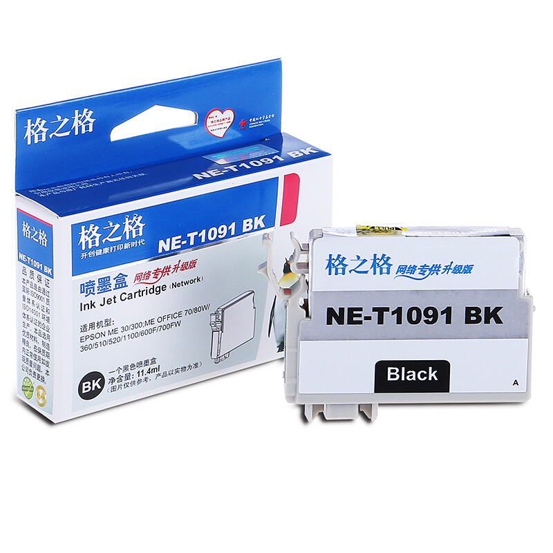 • 格之格墨盒适用爱普生ME30 ME300 ME Office 70 80 1100 360墨盒 T1091墨盒黑色11.4ML