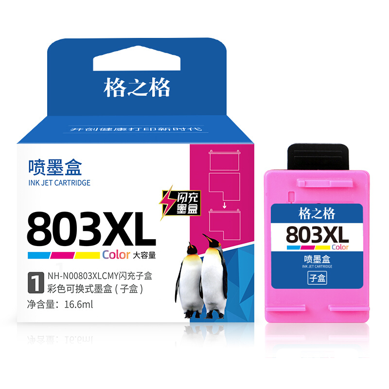 格之格803墨盒可加墨 适用hp惠普 2622 2132 1112 2621 2131 2130 1111打印机墨盒 惠普803墨盒彩色显墨量