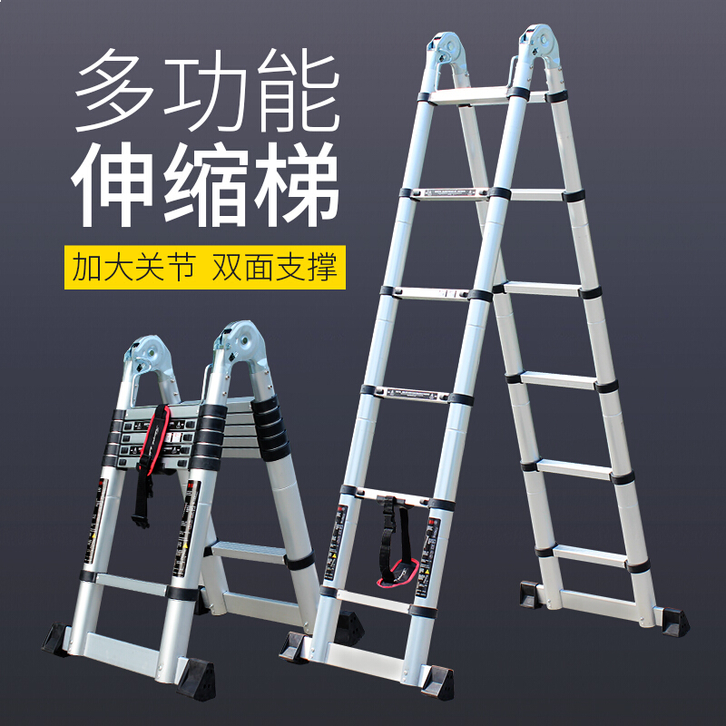 良浦 梯子竹节梯人字梯伸缩梯叉梯直梯工程梯可伸缩铝合金家用楼梯两用5米 B3-5S