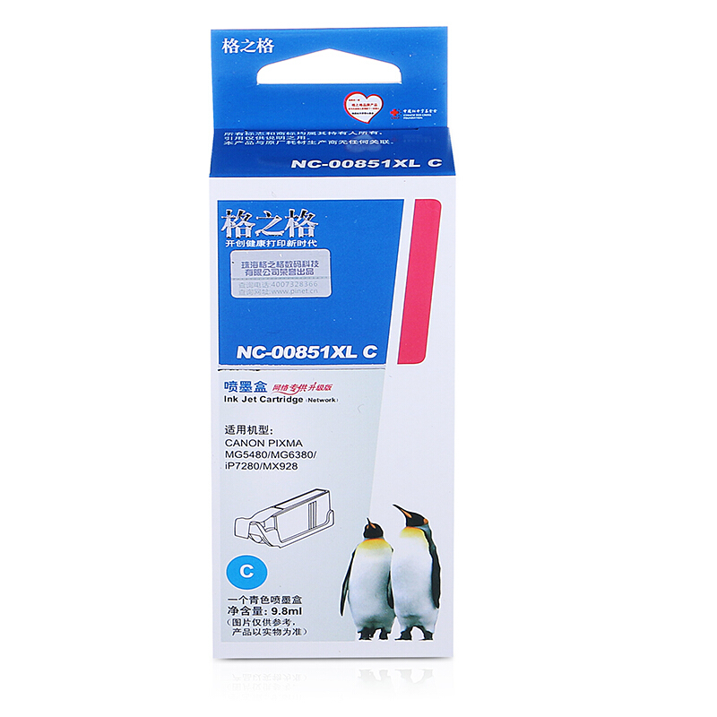 • 格之格 CLI-851C青色墨盒 适用佳能MX928 MG6400 iP7280 iX6880 MG5480 MG7180