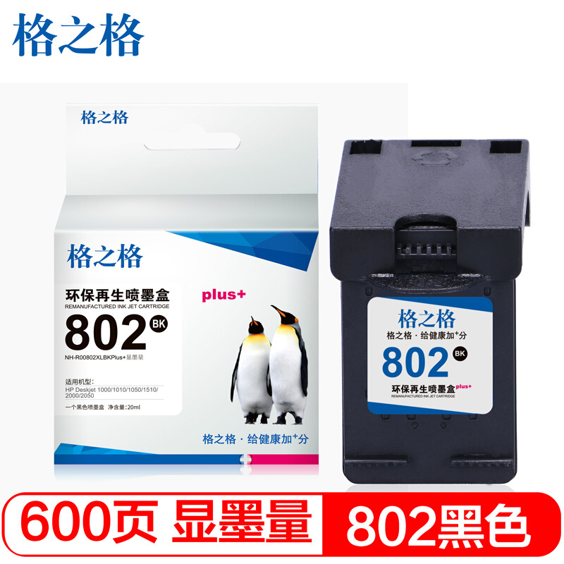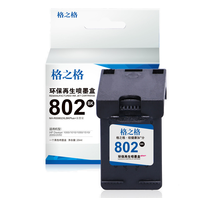 • 格之格802墨盒 适用惠普1000 1010 1050 1510 2000 2050打印机 黑色大容量 显墨量
