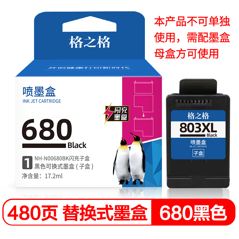 • 格之格 适用惠普680墨盒自营 hp3636 2677 3638 5278 5078 4538 3838 3778 3776打印机墨盒黑色闪充1+1套装