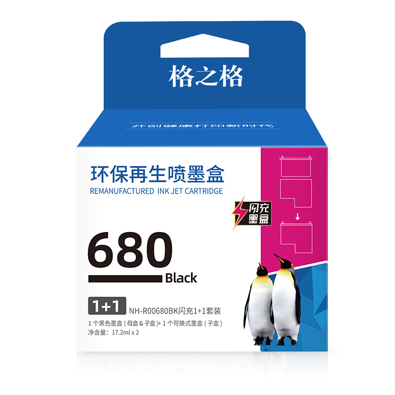 • 格之格680墨盒自营 适用惠普3636墨盒 hp680 2677 3638 3776 5078 3838 4538 5088打印机墨盒闪充1+1彩色套装