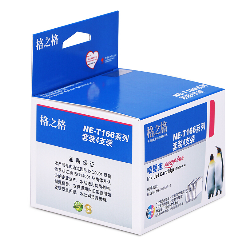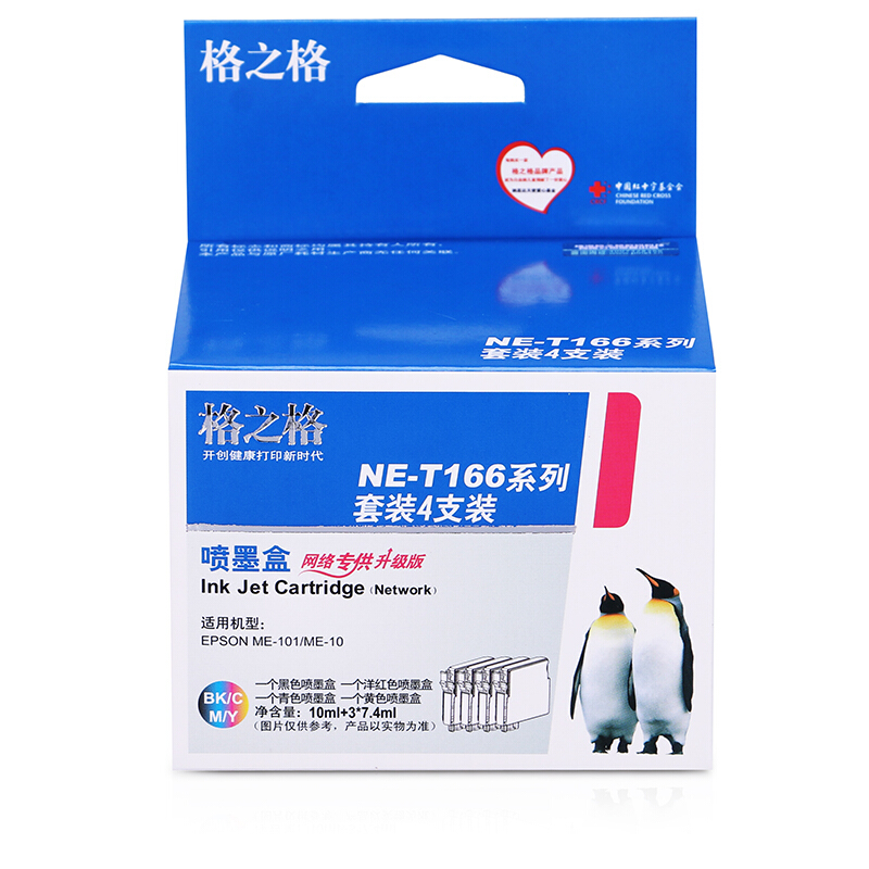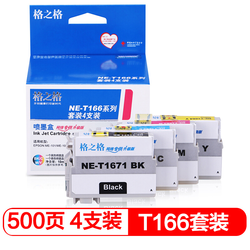 • 格之格166XL彩色墨盒NE-T166 4支装适用爱普生ME10 ME101打印机墨盒