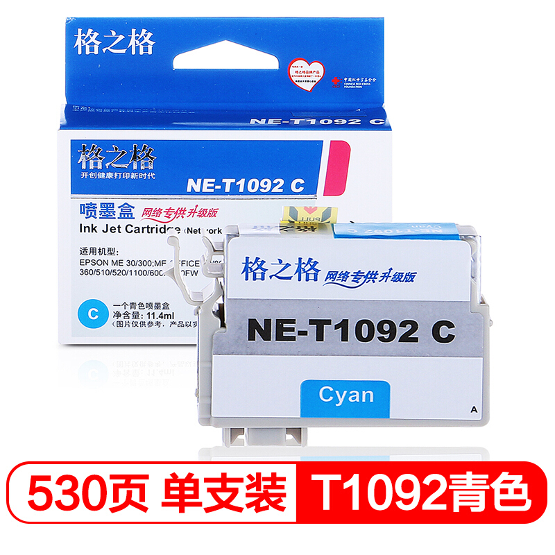• 格之格T1092青色墨盒NE-T1092C适用爱普生ME30 ME300 ME360 ME70 ME510 ME520 ME600F ME80打印机墨盒
