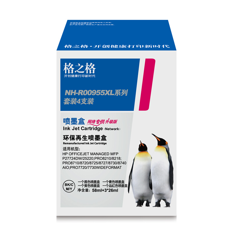 • 格之格955XL墨盒 适用惠普hp 7730墨盒 8210 7720打印机 8720 8710 7740 8730 8218 8725 8740hp955墨盒4支装