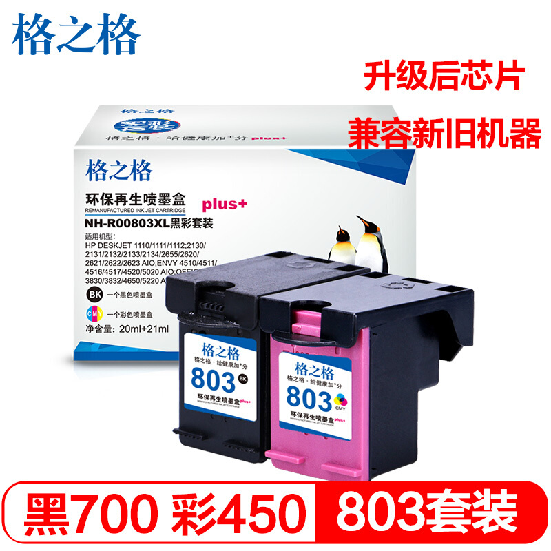 • 格之格803墨盒可加墨 适用惠普hp2622 2132 2621 1111 2131 5022 5055 1112 2130打印机墨盒 黑色彩色套装