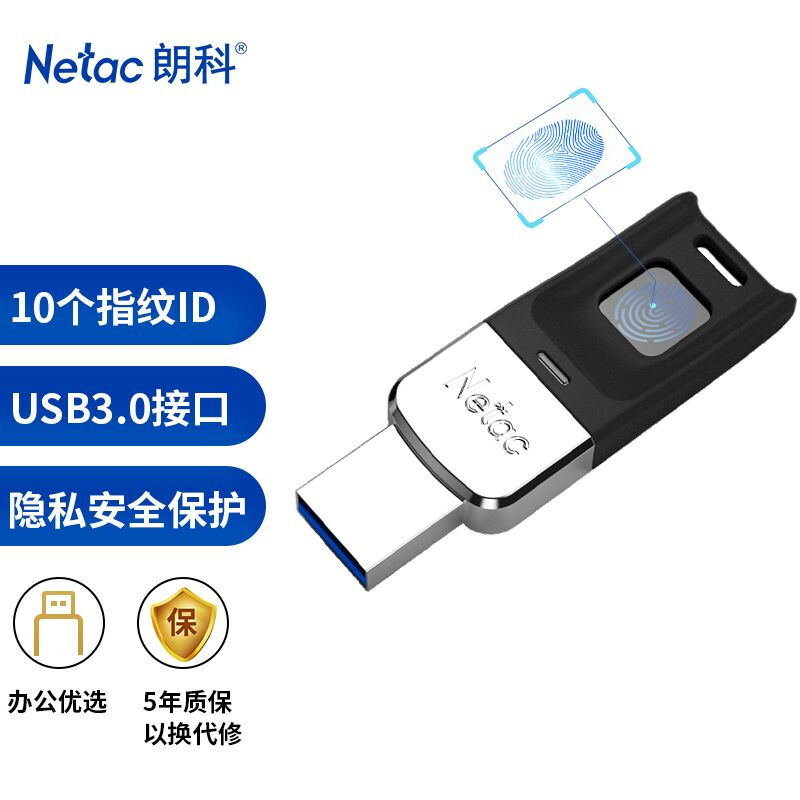 • 朗科(Netac)64GB USB3.0 US1 指纹加密金属U盘 隐私安全保护 商务办公优选