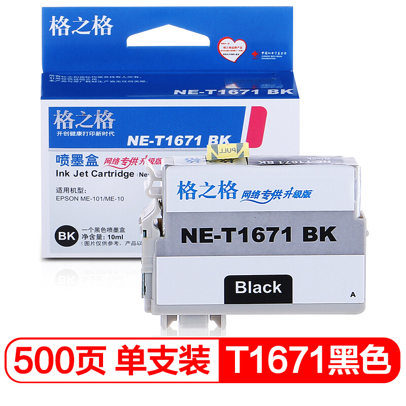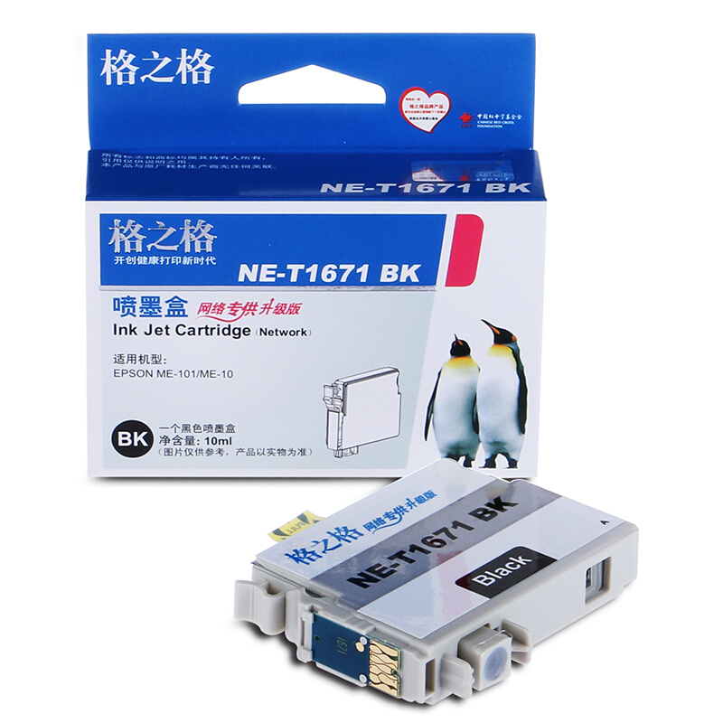• 格之格T1661黑色墨盒NE-T1671BK适用ME10 ME101爱普生打印机墨盒