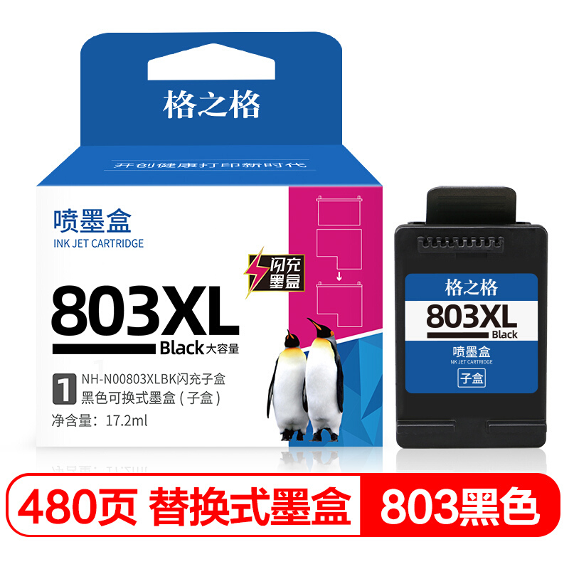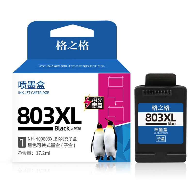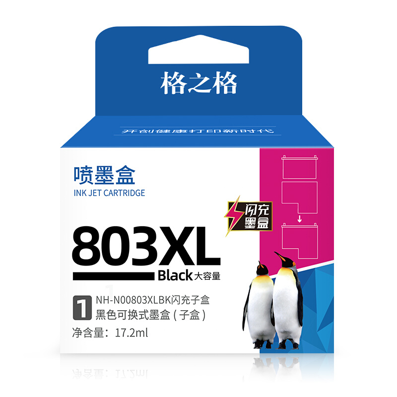格之格803闪充墨盒黑色显墨量适用惠普hp 2622 2621 1111 2132 2600 1112 2131 2130打印机子母盒单支装