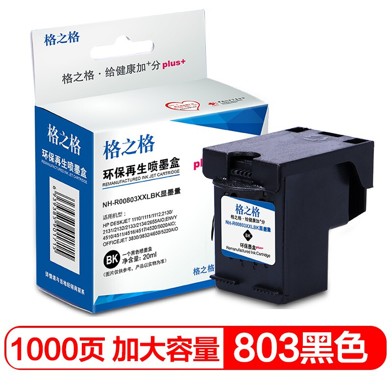 • 格之格 803黑色墨盒 适用惠普HP112 2132 1111 1110 2130 2131 黑色加大容量1支装-显墨量1000页