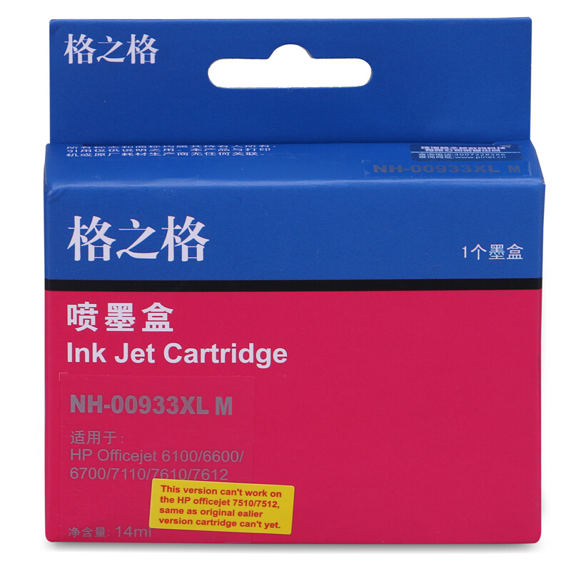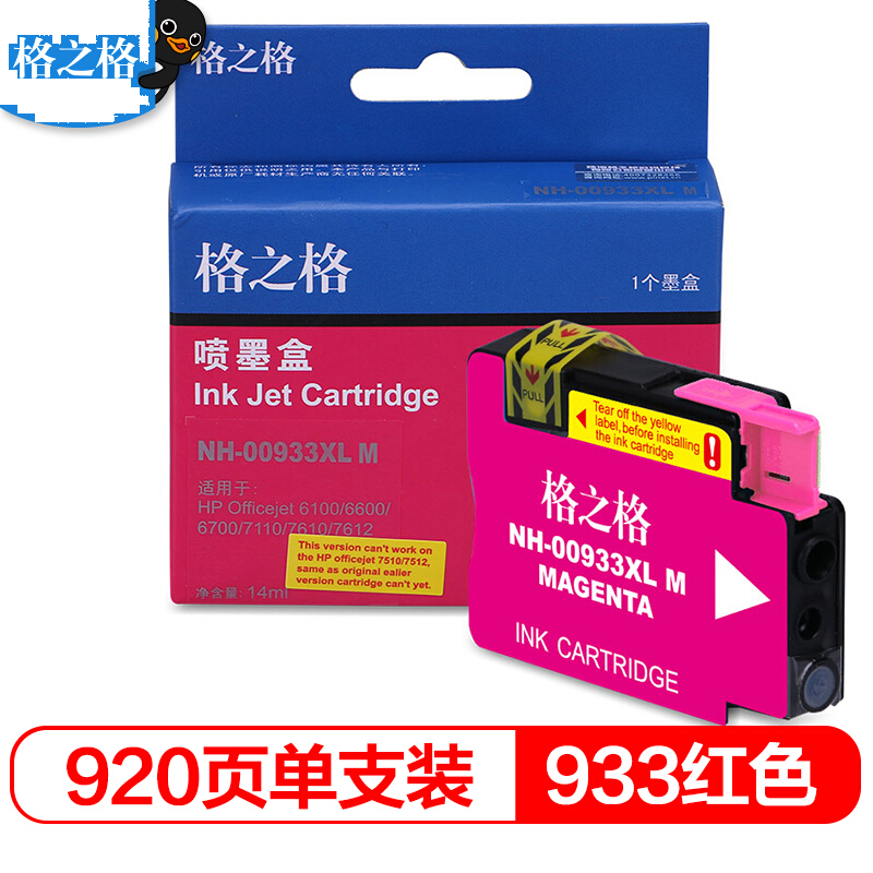 - 格之格932XL墨盒 适用惠普7612打印机墨盒 hp7110 7610 7510 7512 6700 6100 6600 933XL红色大容量