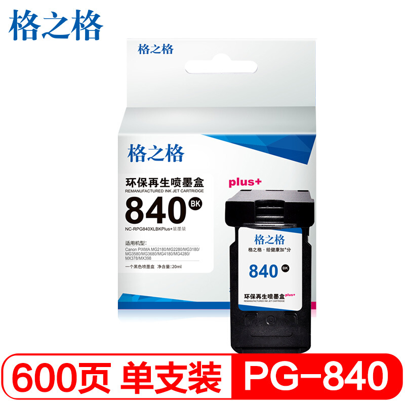 格之格PG-840黑色显墨量墨盒 适用佳能MG2180 MG2280 MG3180 MG3580 CL841