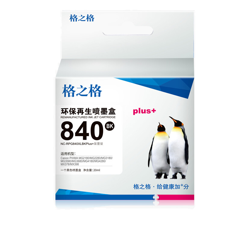 • 格之格PG-840黑色显墨量墨盒 适用佳能MG2180 MG2280 MG3180 MG3580 CL841