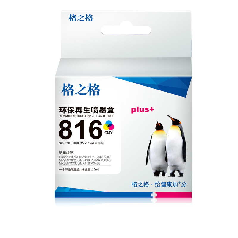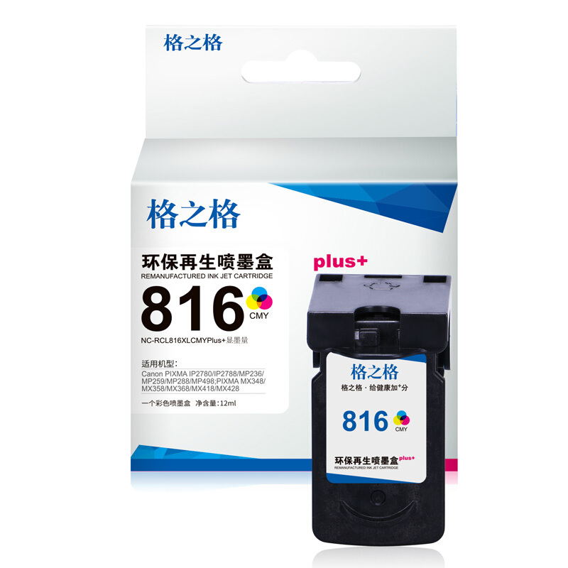 格之格CL-816墨盒彩色显墨量适用佳能mp288 ip2780 MX348 MX358 MX368 MX418 MX428 815 816墨盒