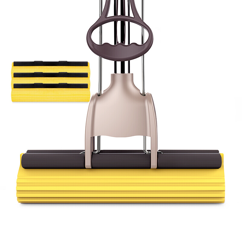 宝家洁 滚轮胶棉拖把3个海绵拖把头家用吸水拖布免手洗干湿两用平板瓷砖地一拖净JY7018
