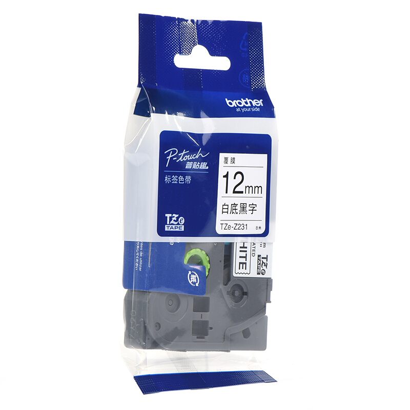 兄弟TZe-Z231 12mm白底黑字标签色带