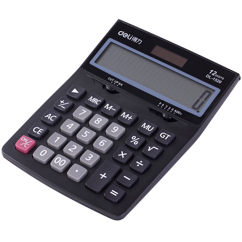 得力 1520A 双电源经典商务桌面计算器 12位大屏记忆储存桌面计算机