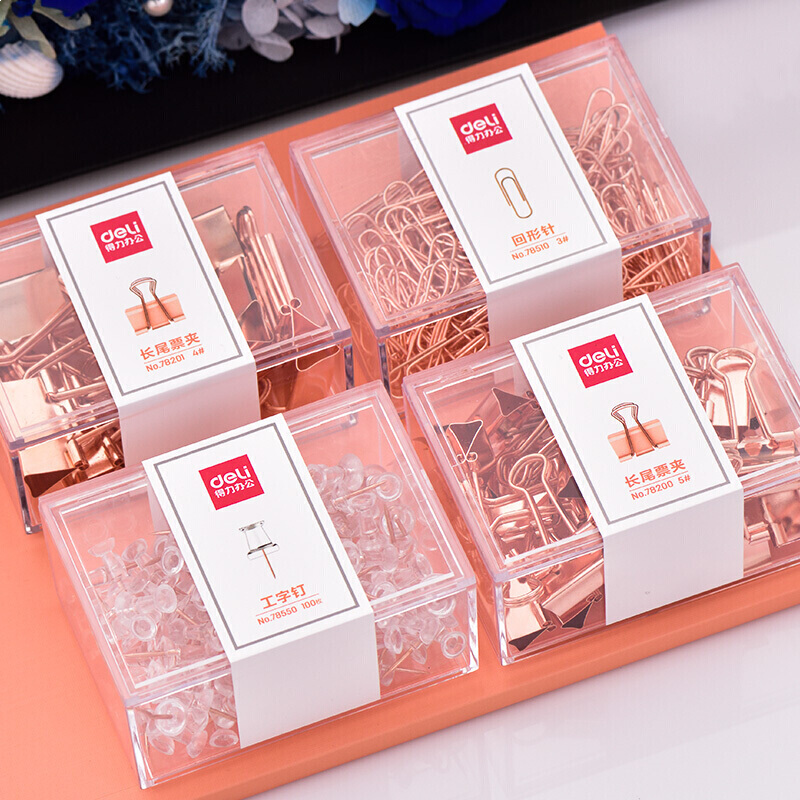 得力78200 长尾票夹5#-25枚 玫瑰金