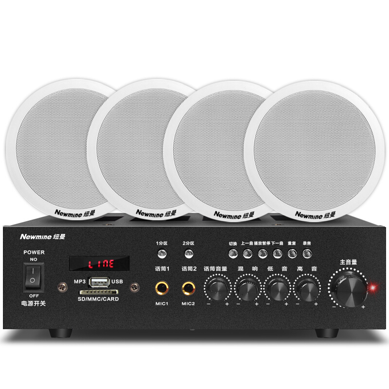 • 纽曼 (Newmine) R15 定压吸顶喇叭音响套装 吊顶背景音乐公共广播功放音箱系统( 一拖四)