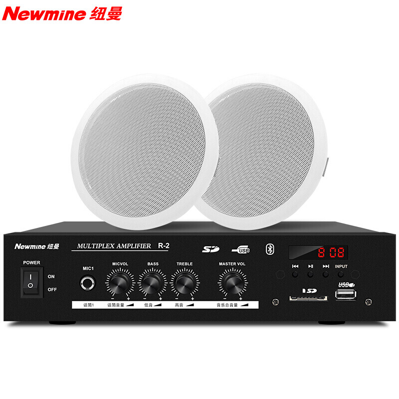 纽曼( Newmine) R12 吸顶喇叭音响功放套装 吊顶背景音乐公共广播音箱系统 一拖二