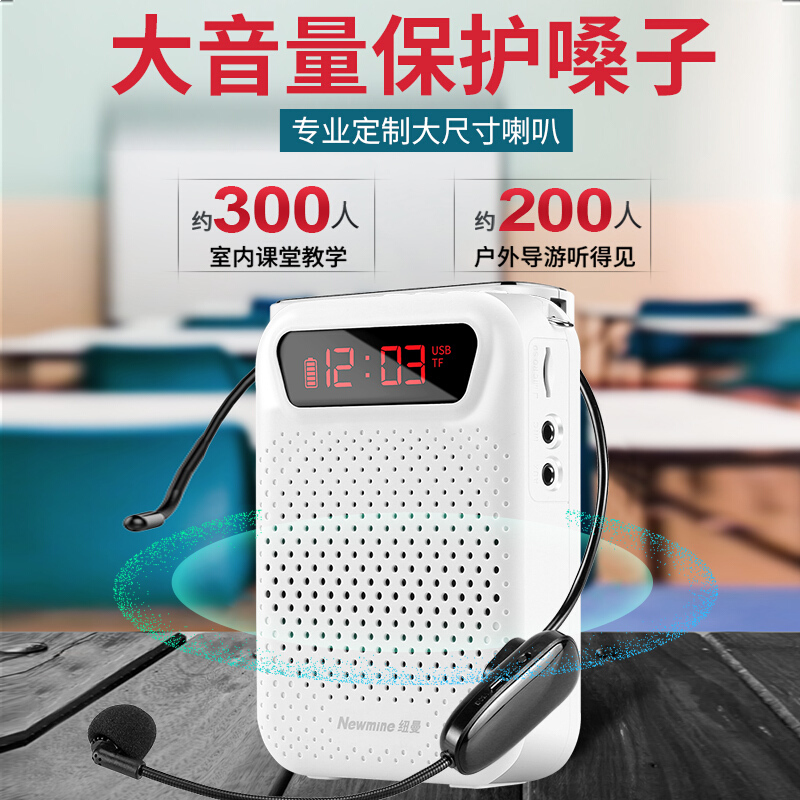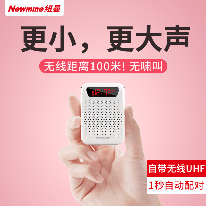 纽曼 Newmine k51无线便携式扩音器小蜜蜂UHF大功率教师教学户外导游专用迷你带屏智能蓝牙U盘插卡音响 白色