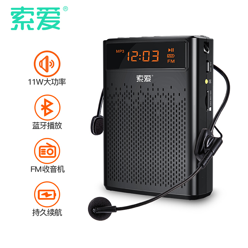 • 索爱(soaiy)S-538 11W大功率蓝牙小蜜蜂扩音器 教学导游腰挂户外长续航插卡收音机播放器 睿智黑