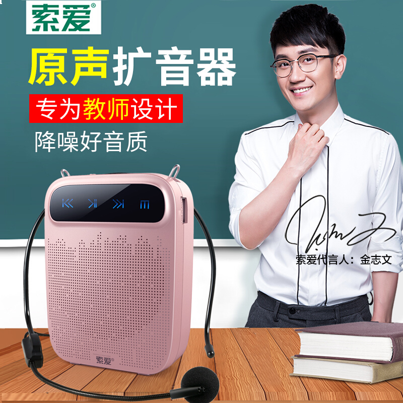 索爱(soaiy)S-618SE 10W大功率便携式小蜜蜂扩音器 教学教师导游扩 插卡U盘播放器唱戏机 玫瑰金
