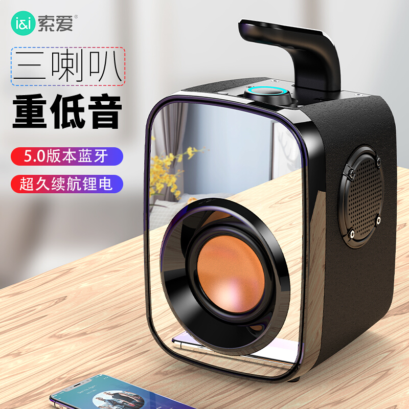 索爱(soaiy)SH25 无线蓝牙音箱 大音量超重低音炮 广场舞户外音响 车载收音机小型便携式收款迷你音响