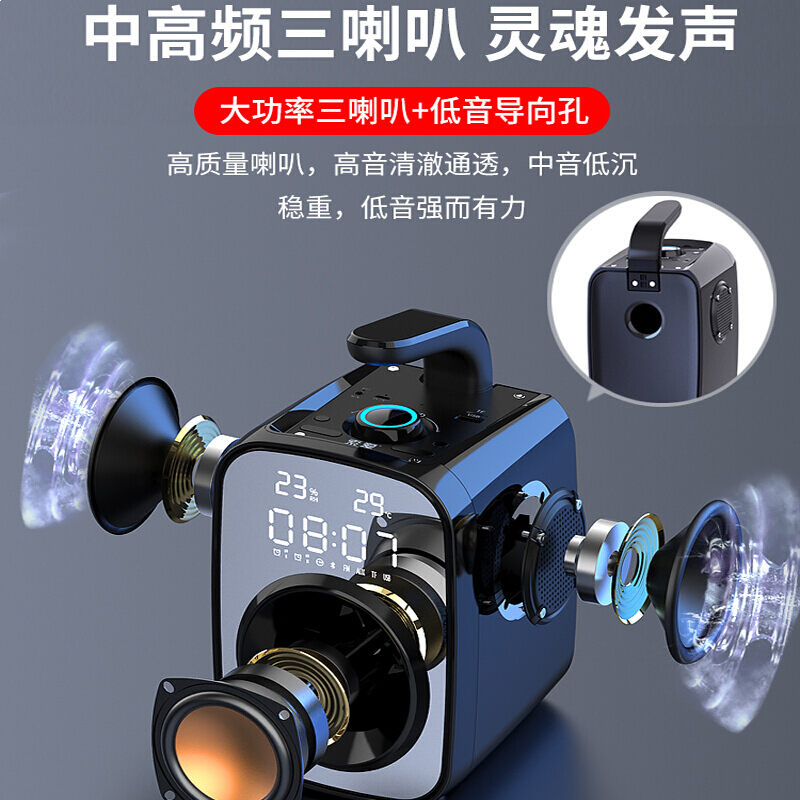 • 索爱(soaiy)SH25 无线蓝牙音箱 大音量超重低音炮 广场舞户外音响 车载收音机小型便携式收款迷你音响