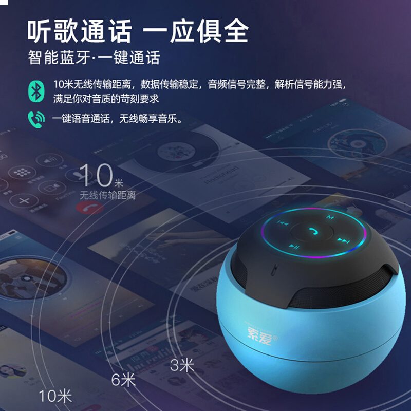 • 索爱(soaiy) S-35 蓝牙音箱 手机电脑低音炮音响 手机车载播放器 户外便携插卡迷你小音响 天空蓝