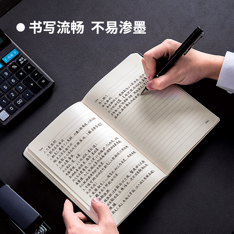 得力25K120张商务磁扣皮面本 工作记事本会议记录本笔记本子文具 黑色3301