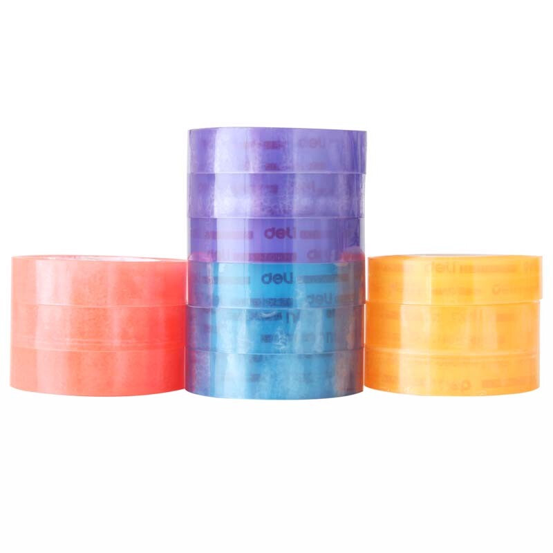 得力学生文具胶带小号胶带 透明彩色胶布 办公用品 宽12mm 12卷/筒 30024